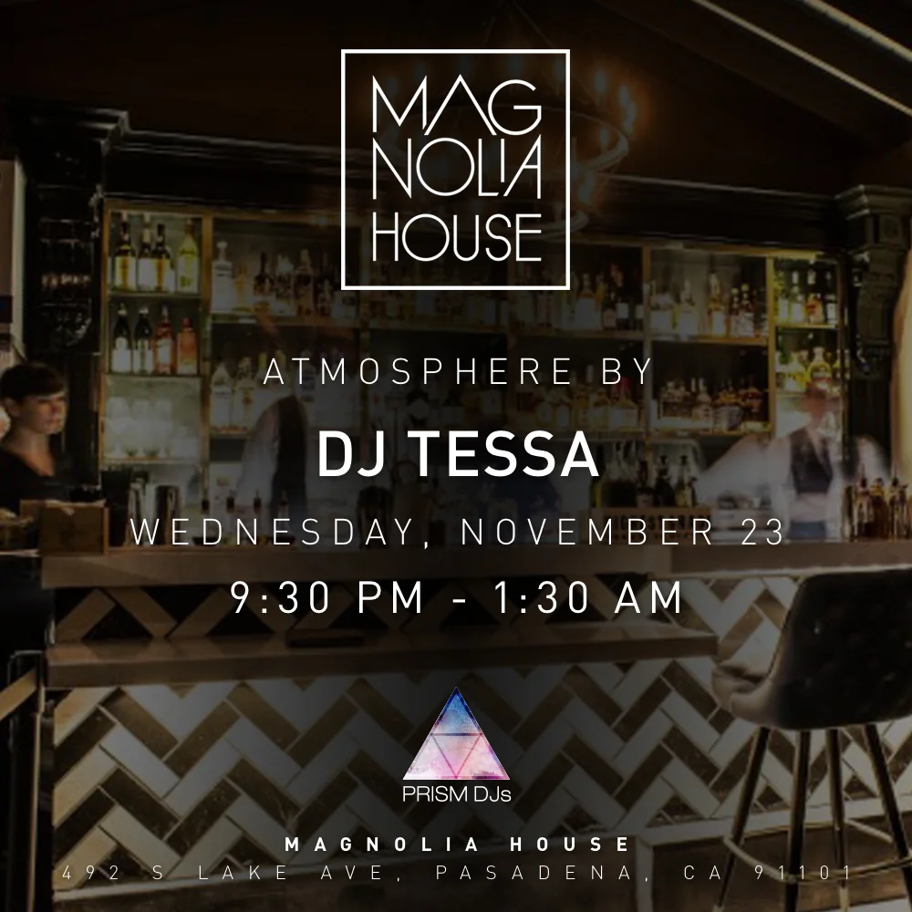 Catch me at Magnolia House Pasadena on Wednesday, November 23! Indie dance, pop hits, soul, funk, mashup.